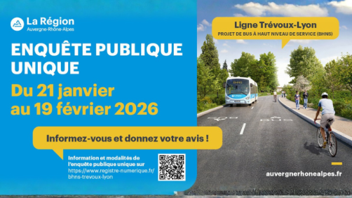Enquête publique – Projet de Bus à Haut Niveau de Service (BHNS) Trévoux–Lyon - Donnez votre avis du 21 janvier au 19 février 2026 Lire