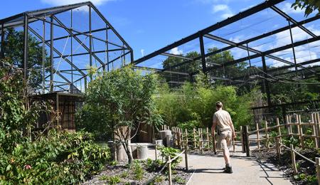 - L'enclos des gibbons et des élaphodes représentent un espace de 300m2 au sol, et surtout une très grande hauteur afin de permettre aux gibbons d’évoluer dans des volumes supplémentaires par rapport à leur enclos précédant.