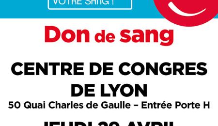 Le Centre de Congrès de Lyon organise une journée Don du sang le 29 avril prochain de 9h à 15h (Cité Internationale - 50 quai Charles de Gaulle - Entrée Porte H).