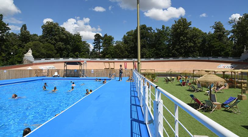 Afin de compléter son offre balnéaire estivale, la Ville de Lyon a installé une piscine éphémère au cœur du parc de la Tête d’Or. Une vraie piscine, la plage en plus. L’effet est détonant.