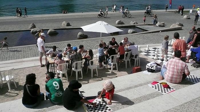 Sur les terrasses des Berges de la Guillotière : venez vous initier aux échecs.