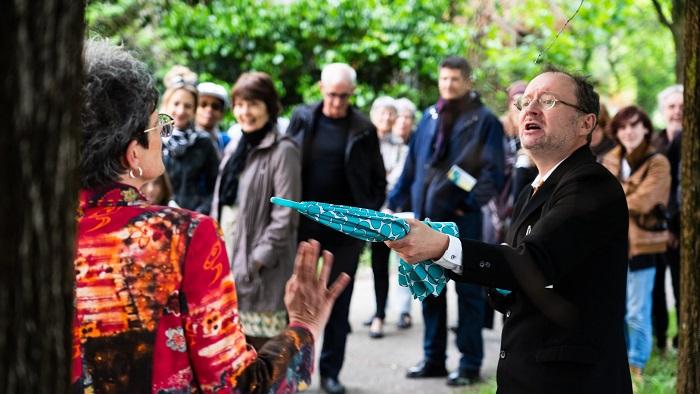 Ce spectacle interactif est une réflexion sur le voisinage. Présenté comme une enquête publique menée auprès des visiteurs, il interroge sur le vivre ensemble de façon humoristique. Pour illustrer le propos, les deux comédiens Danielle Charotte et Gérald Gaudau, croquent sur le vif des petites histoires de voisinage. Une série de portraits hauts en couleur.