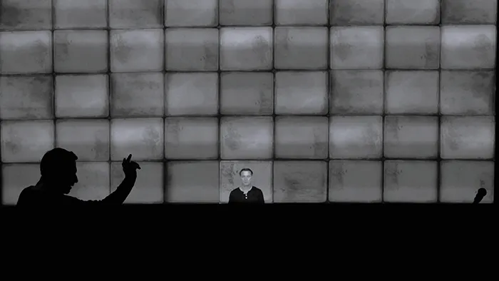 Naviguant entre la scène et la vidéo, elle est menée par « Le Narrateur » qui nous présente, tout en maitrise, une galerie de « Lambdas » coincés dans un ailleurs. Peu à peu, alors que le semblant de maitrise part en éclat, la réalité va peu à peu se défragmenter pour peut-être autoriser le protagoniste à aller à sa propre rencontre, enfin.