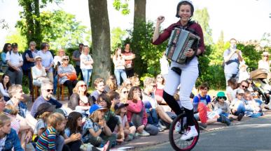 Un spectacle en musique live pour un monocycle, un accordéon et 32 chamallows !