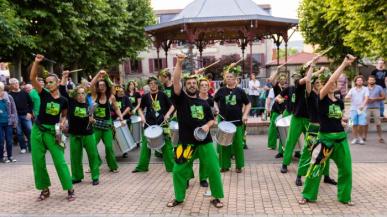 Une déambulation festive : mélange de samba brésilienne traditionnelle, Prince et… George Brassens !