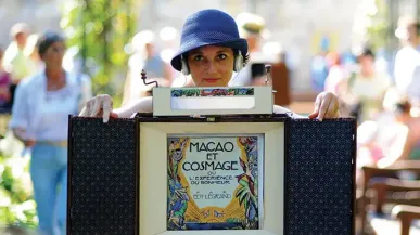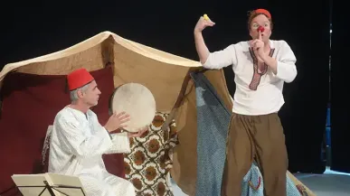 Castelet miniature pour 12 spectateurs. D’après l’album Macao et Cosmage ou l’expérience du bonheur, d’Edy Legrand, aux Editions Circonflexe.