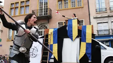 Un spectacle tout public : plaidoirie loufoque, reconstitution historique et combat médiéval.