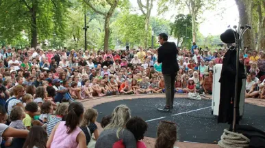 Les dimanches de l'île barbe : spectacles, jeux, animations, musiques du monde, et concerts les pieds dans l'herbe.