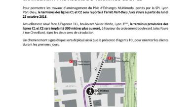 Lignes C1 & C2 : report des terminus à l’arrêt Part-Dieu Jules Favre